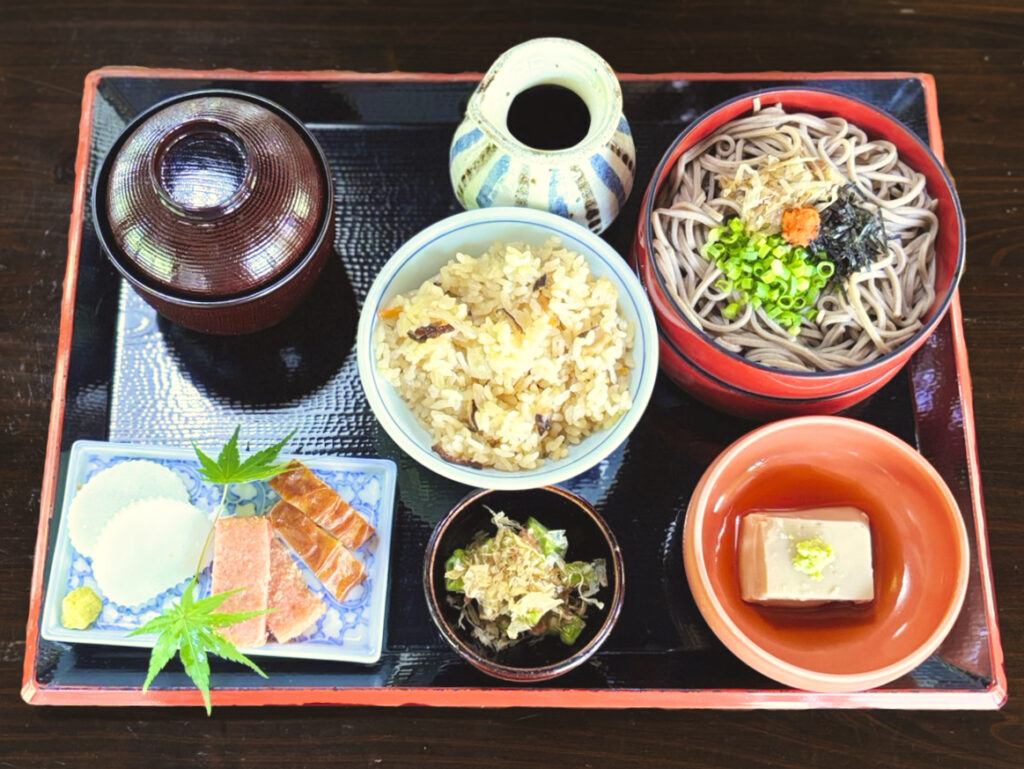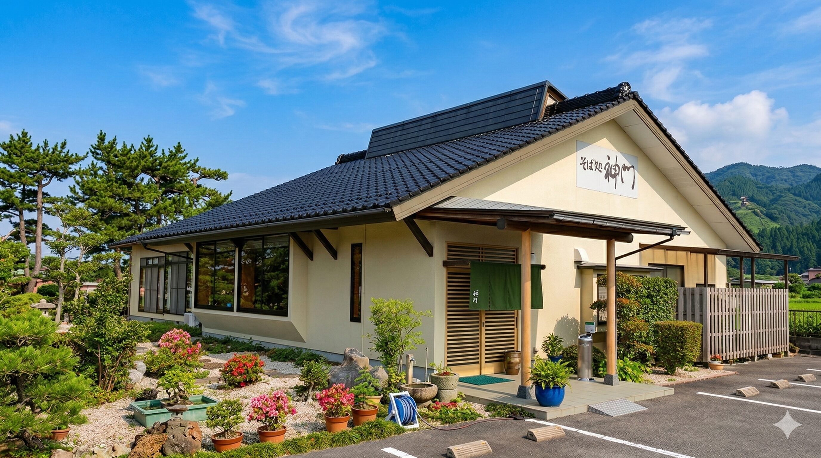 須佐神社のすぐ南で味わえる、のど越しと歯ごたえをしっかり感じる太めの田舎蕎麦が特長のお店です。三宝蕎麦は、とろろ・山菜・錦糸卵に海苔と葱が彩りよく盛られ、割子蕎麦は三段重ねの蕎麦にたっぷりの薬味が添えられてボリューム満点です。他にもネバトロ蕎麦や炊き込みご飯など、心もお腹も満たされるメニューが揃っています。 神社参拝の際のランチや、地元ならではの蕎麦を味わいたい時におすすめです。