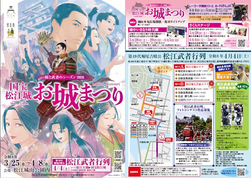 2026年の「国宝松江城 お城まつり」は3月25日から4月8日まで開催されています。